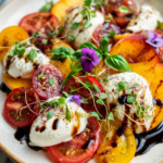 There’s something effortlessly luxurious about a simple salad that looks like it belongs on a fine-dining menu. Enter the Elegant Peach Caprese Salad with Burrata, a delightful twist on the classic Italian Caprese that transforms fresh peaches, creamy burrata, and fragrant basil into a visual and culinary masterpiece. Ideal for a warm summer afternoon, a sophisticated brunch, or an elegant dinner party, this salad is the perfect way to impress guests without spending hours in the kitchen.