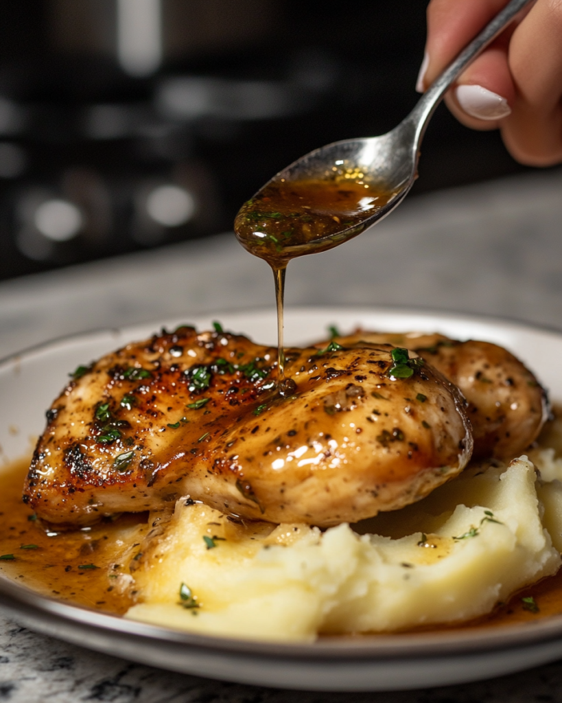 The golden, buttery glaze on the chicken pairs perfectly with smooth mashed potatoes, while the savory pan sauce ties everything together. It’s a dish that feels indulgent without being complicated, making it ideal for both busy weeknights and weekend dinners.